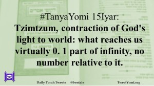 #TanyaYomi 15Iyar: Tzimtzum, contraction of God’s light to world: what reaches us virtually 0. 1 part of infinity, no number relative to it.