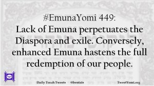 #EmunaYomi 449: Lack of Emuna perpetuates the Diaspora and exile. Conversely, enhanced Emuna hastens the full redemption of our people.