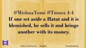 MishnaYomi, Tmura #MishnaYomi #Tmura 4:4 Date: May 12, 2020Author: ysspitz #MishnaYomi #Tmura 4:4 If one set aside a Hatat and it is blemished, he sells it and brings another with its money. Share this: Share on X (Opens in new window) X Share on Facebook (Opens in new window) Facebook Like Loading... Related
