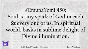 #EmunaYomi 450: Soul is tiny spark of God in each & every one of us. In spiritual world, basks in sublime delight of Divine illumination.