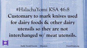#HalachaYomi KSA 46:8 Customary to mark knives used for dairy foods & other dairy utensils so they are not interchanged w/ meat utensils.