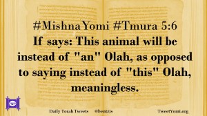 #MishnaYomi #Tmura 5:6 If says: This animal will be instead of “an” Olah, as opposed to saying instead of “this” Olah, meaningless.