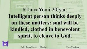 #TanyaYomi 20Iyar: Intelligent person thinks deeply on these matters: soul will be kindled, clothed in benevolent spirit, to cleave to God.
