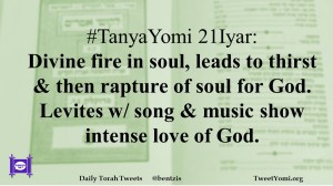 #TanyaYomi 21Iyar: Divine fire in soul, leads to thirst & then rapture of soul for God. Levites w/ song & music show intense love of God.