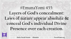 #EmunaYomi 455: Layers of God’s concealment: Laws of nature appear absolute & conceal God’s individual Divine Presence over each creation.