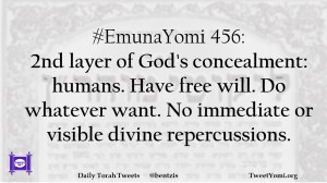 #EmunaYomi 456: 2nd layer of God’s concealment: humans. Have free will. Do whatever want. No immediate or visible divine repercussions.