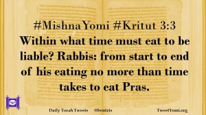 #MishnaYomi #Kritut 3:3 Within what time must eat to be liable? Rabbis: from start to end of his eating no more than time takes to eat Pras.