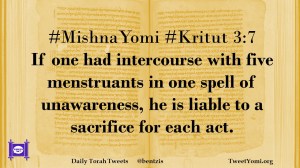 #MishnaYomi #Kritut 3:7 If one had intercourse with five menstruants in one spell of unawareness, he is liable to a sacrifice for each act.