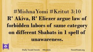 #MishnaYomi #Kritut 3:10 R’ Akiva, R’ Eliezer argue law of forbidden labors of same category on different Shabats in 1 spell of unawareness.