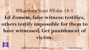 #RambamYomi #Edut 18:1 Ed Zomem, false witness: testifies, others testify impossible for them to have witnessed. Get punishment of victim.