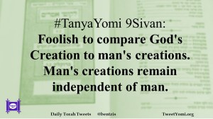 TanyaYomi #TanyaYomi 9Sivan Date: June 2, 2020Author: ysspitz #TanyaYomi 9Sivan: Foolish to compare God’s Creation to man’s creations. Man’s creations remain independent of man. Share this: Share on X (Opens in new window) X Share on Facebook (Opens in new window) Facebook Like Loading... Related