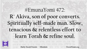 #EmunaYomi 472: R’ Akiva, son of poor converts. Spiritually self-made man. Slow, tenacious & relentless effort to learn Torah & refine soul.