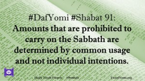 DafYomi, Shabat #DafYomi #Shabat 91 Date: June 5, 2020Author: ysspitz #DafYomi #Shabat 91: Amounts that are prohibited to carry on the Sabbath are determined by common usage and not individual intentions. Share this: Share on X (Opens in new window) X Share on Facebook (Opens in new window) Facebook Like Loading... Related