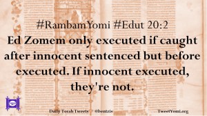 #RambamYomi #Edut 20:2 Ed Zomem only executed if caught after innocent sentenced but before executed. If innocent executed, they’re not.