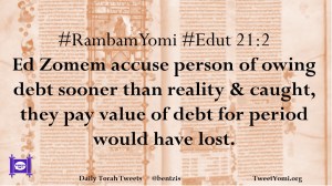 #RambamYomi #Edut 21:2 Ed Zomem accuse person of owing debt sooner than reality & caught, they pay value of debt for period would have lost.