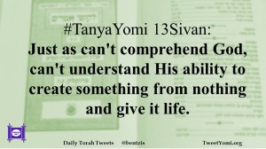 #TanyaYomi 13Sivan: Just as can’t comprehend God, can’t understand His ability to create something from nothing and give it life.