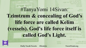 #TanyaYomi 14Sivan: Tzimtzum & concealing of God’s life force are called Kelim (vessels). God’s life force itself is called God’s Light.