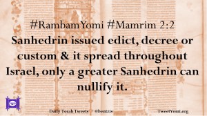 #RambamYomi #Mamrim 2:2 Sanhedrin issued edict, decree or custom & it spread throughout Israel, only a greater Sanhedrin can nullify it.
