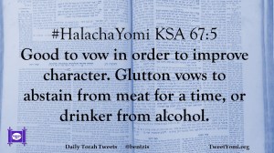 #HalachaYomi KSA 67:5 Good to vow in order to improve character. Glutton vows to abstain from meat for a time, or drinker from alcohol.