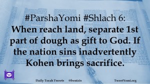 #ParshaYomi #Shlach 6: When reach land, separate 1st part of dough as gift to God. If the nation sins inadvertently Kohen brings sacrifice.