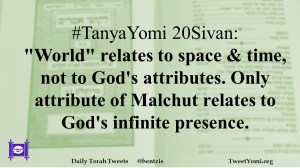 #TanyaYomi 20Sivan: “World” relates to space & time, not to God’s attributes. Only attribute of Malchut relates to God’s infinite presence.