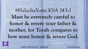 #HalachaYomi KSA 143:1 Must be extremely careful to honor & revere your father & mother, for Torah compares to how must honor & revere God.