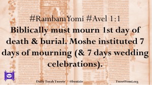#RambamYomi #Avel 1:1 Biblically must mourn 1st day of death & burial. Moshe instituted 7 days of mourning (& 7 days wedding celebrations).