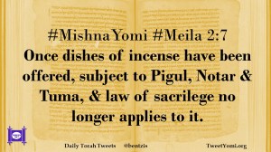 #MishnaYomi #Meila 2:7 Once dishes of incense have been offered, subject to Pigul, Notar & Tuma, & law of sacrilege no longer applies to it.