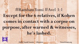 #RambamYomi #Avel 3:1 Except for the 6 relatives, if Kohen comes in contact with a corpse on purpose, after warned & witnesses, he’s lashed.