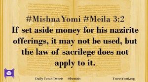 #MishnaYomi #Meila 3:2 If set aside money for his nazirite offerings, it may not be used, but the law of sacrilege does not apply to it.