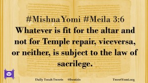 #MishnaYomi #Meila 3:6 Whatever is fit for the altar and not for Temple repair, viceversa, or neither, is subject to the law of sacrilege.