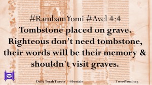 #RambamYomi #Avel 4:4 Tombstone placed on grave. Righteous don’t need tombstone, their words will be their memory & shouldn’t visit graves.