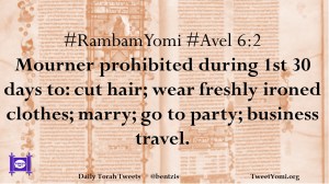 #RambamYomi #Avel 6:2 Mourner prohibited during 1st 30 days to: cut hair; wear freshly ironed clothes; marry; go to party; business travel.