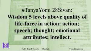 #TanyaYomi 28Sivan: Wisdom 5 levels above quality of life-force in action: action; speech; thought; emotional attributes; intellect.