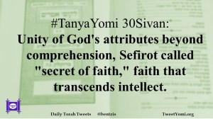 #TanyaYomi 30Sivan: Unity of God’s attributes beyond comprehension, Sefirot called “secret of faith,” faith that transcends intellect.