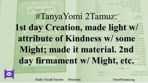 #TanyaYomi 2Tamuz: 1st day Creation, made light w/ attribute of Kindness w/ some Might; made it material. 2nd day firmament w/ Might, etc.