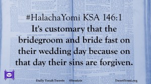 #HalachaYomi KSA 146:1 It’s customary that the bridegroom and bride fast on their wedding day because on that day their sins are forgiven.