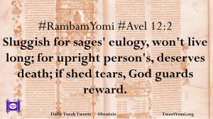 #RambamYomi #Avel 12:2 Sluggish for sages’ eulogy, won’t live long; for upright person’s, deserves death; if shed tears, God guards reward.