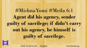 #MishnaYomi #Meila 6:1 Agent did his agency, sender guilty of sacrilege; if didn’t carry out his agency, he himself is guilty of sacrilege.