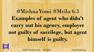 #MishnaYomi #Meila 6:3 Examples of agent who didn’t carry out his agency, employer not guilty of sacrilege, but agent himself is guilty.