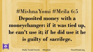 #MishnaYomi #Meila 6:5 Deposited money with a moneychanger: if it was tied up, he can’t use it; if he did use it he is guilty of sacrilege.