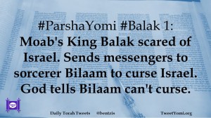 #ParshaYomi #Balak 1: Moab’s King Balak scared of Israel. Sends messengers to sorcerer Bilaam to curse Israel. God tells Bilaam can’t curse.
