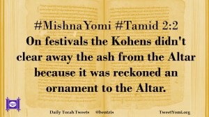 #MishnaYomi #Tamid 2:2 On festivals the Kohens didn’t clear away the ash from the Altar because it was reckoned an ornament to the Altar.