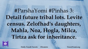 #ParshaYomi #Pinhas 3: Detail future tribal lots. Levite census. Zelofhad’s daughters, Mahla, Noa, Hogla, Milca, Tirtza ask for inheritance.