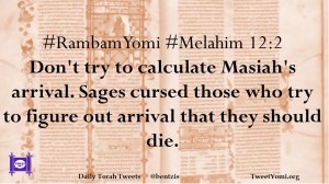 #RambamYomi #Melahim 12:2 Don’t try to calculate Masiah’s arrival. Sages cursed those who try to figure out arrival that they should die.