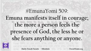 #EmunaYomi 509: Emuna manifests itself in courage; the more a person feels the presence of God, the less he or she fears anything or anyone.