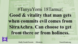 #TanyaYomi 18Tamuz: Good & vitality that man gets when commits evil comes from SitraAchra. Can choose to get from there or from holiness.