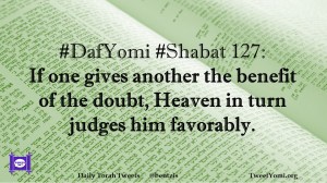 DafYomi, Shabat #DafYomi #Shabat 127 Date: July 12, 2020Author: ysspitz #DafYomi #Shabat 127: If one gives another the benefit of the doubt, Heaven in turn judges him favorably. Share this: Share on X (Opens in new window) X Share on Facebook (Opens in new window) Facebook Like Loading... Related