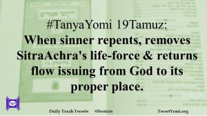#TanyaYomi 19Tamuz: When sinner repents, removes SitraAchra’s life-force & returns flow issuing from God to its proper place.