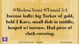#MishnaYomi #Tamid 5:4 Incense ladle: big Tarkav of gold, held 3 Kavs, small dish in middle, heaped w/ incense. Had piece of cloth covering.